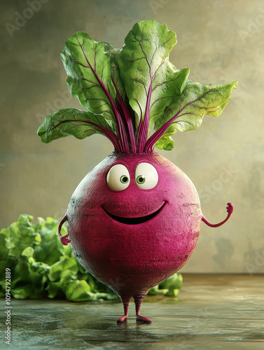 Colorful cartoon beetroot character with a happy expression