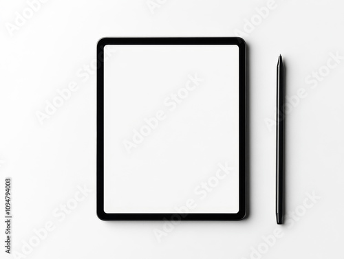 Tablet with blank screen and stylus on white background