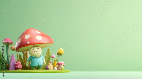Charming fluffy monster wearing daisy crown surrounded by butterflies in soft light