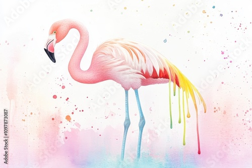 Pink flamingo watercolor painting with whimsical charm, perfect for nursery decor