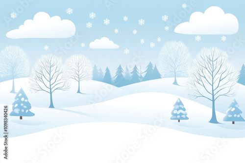 Christmas winter landscape with snow on hills and trees