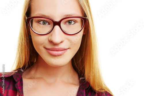 Junge Frau zu Weihnachten vor rotem Hintergrund