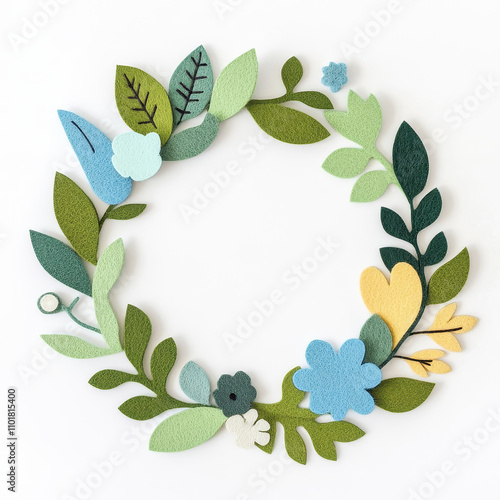 Colorful paper cutout wreath with flowers and leaves