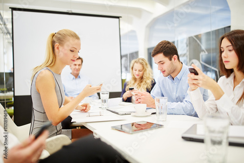 Team kommuniziert mit Smartphones