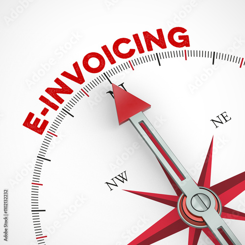 Kompass zeigt auf Schriftzug E-Invoicing als Hinweis und Warnung