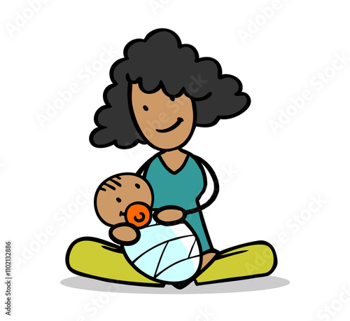 Mutter im Schneidersitz hält ihr Baby in den Armen