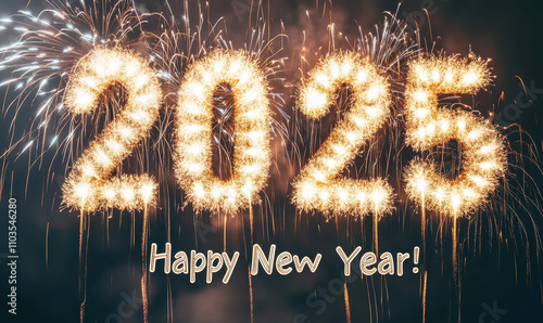 Sparkling fireworks display celebrating New Year's Eve 2025