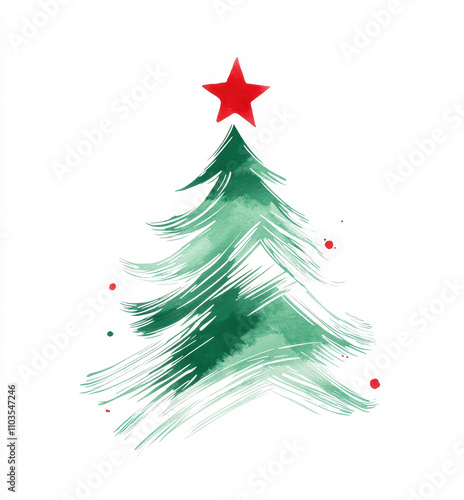 Artistic green brush stroke Christmas tree with red star