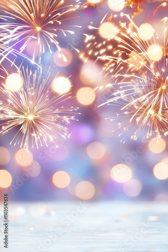 Happy New Year fireworks display with bold text and festive glow for celebrations