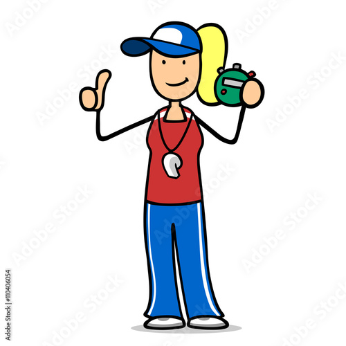 Cartoon Frau als Fitness Trainer