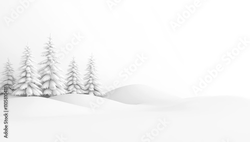 Realistic winter tree covered in snow in serene landscape, digital rendering