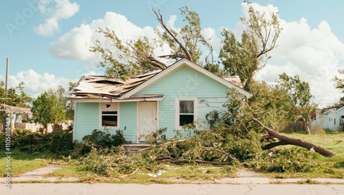 Illustration of modern detached house with beautiful garden as city real estate photography (Generative AI)