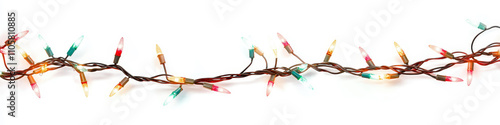 Brightly colored Christmas lights forming a rectangular frame on white background