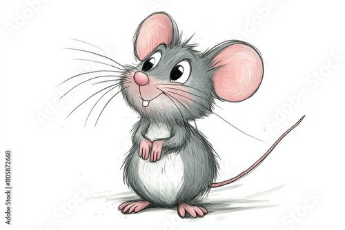 Cute cartoon mouse illustration, showcasing adorable character design with big ears and curious expression