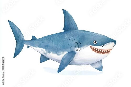 Adorable cartoon shark illustration, featuring a cute and friendly shark character for kids' entertainment and educational use