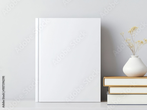 Minimalist 3D rendering of a blank white book cover mockup stack