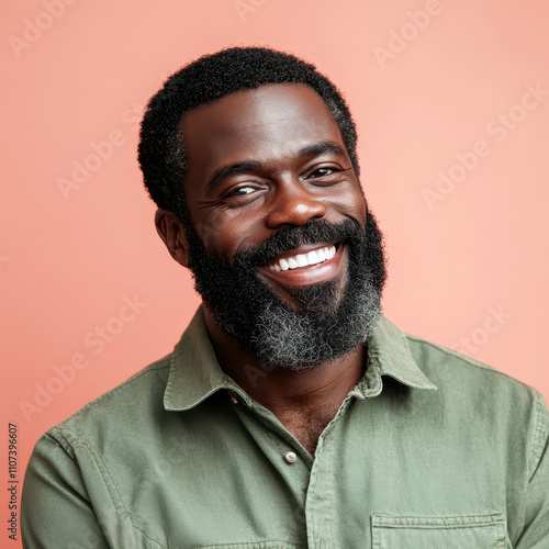 Portrait of an African man in his 40s with short dark hair smiling in a green shirt, conveying warmth and confidence