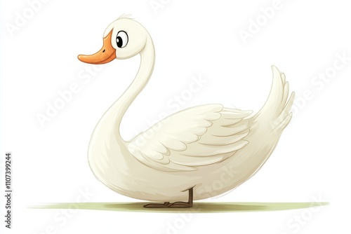 Charming cartoon goose character with a joyful expression, depicted in a fun and playful children’s illustration style