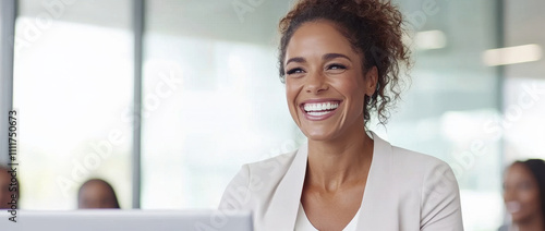 Portrait of a smiling businesswoman exemplifying diversity and inclusion in a Canadian office setting