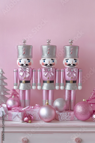 Christmas tree with white ornaments in a snowy winter setting, festive holiday decor