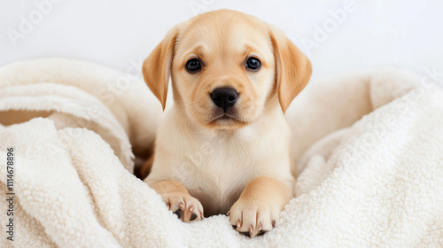 Picture of a pair of cute baby golden retriever puppy dogs in studio