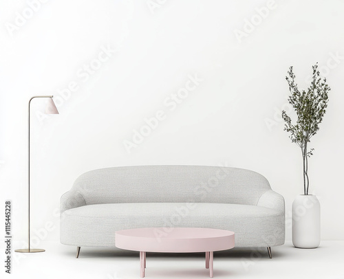 Modern minimalist living room interior with gray sofa and blank wall