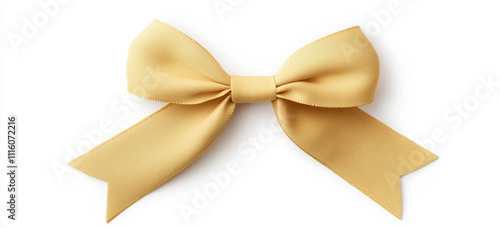Elegant golden satin ribbon bow isolated on white background