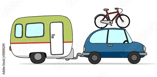 Wohnwagen als Anhänger an Auto als Malvorlage