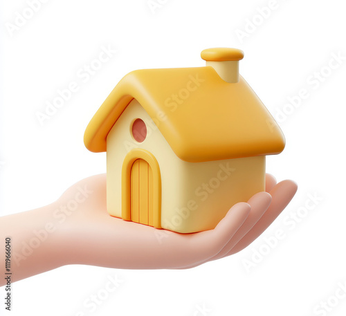 3D realistic icon of a hand holding a small yellow house model
