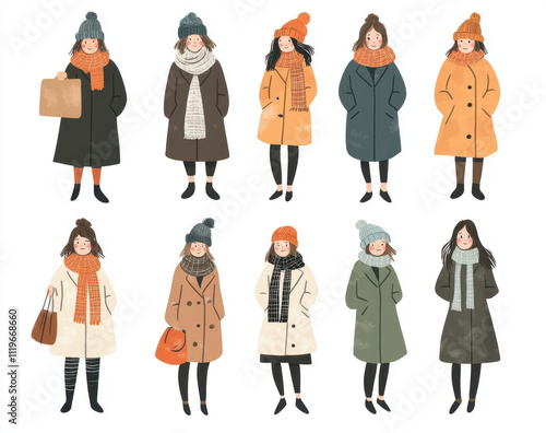 Stylized illustration depicting diverse women in colorful modern outfits and hairstyles
