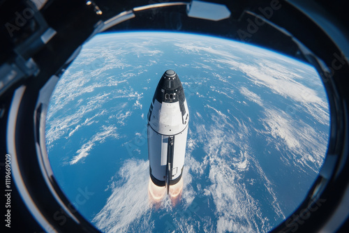 Rocket Ship Soaring Through Space, Leaving Earth's Atmosphere