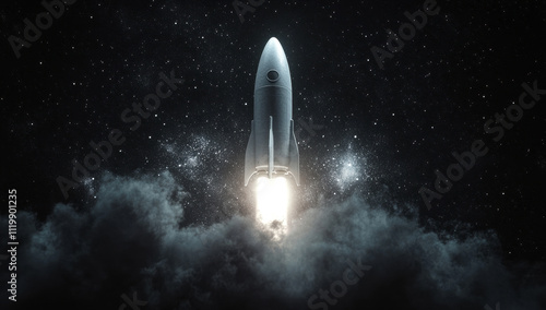 Rocket Ship Soaring Through Space, Leaving Earth's Atmosphere