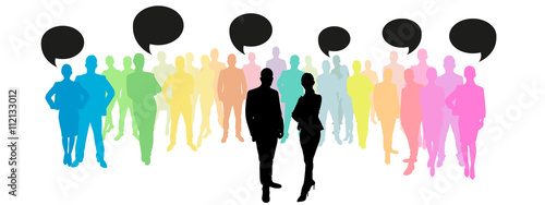 Panorama aus Silhouetten von Geschäftsleuten vor bunten Business Portraits