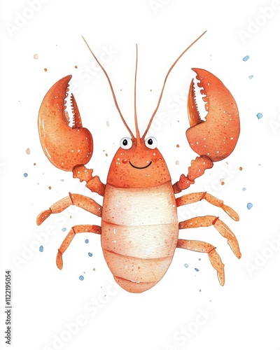Adorable kids cartoon style lobster illustration with cheerful expression and vibrant colors