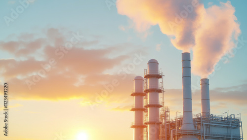 Industrial Chimneys Billowing White Smoke Against a Clear Blue Sky