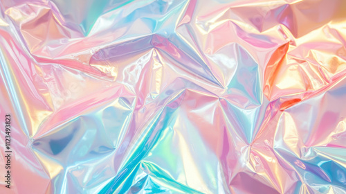 Vibrant rainbow stripes background with neon holographic glass textures and abstract light patterns.