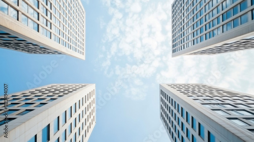 Modern glass building reflecting clouds and sky from a low angle perspective