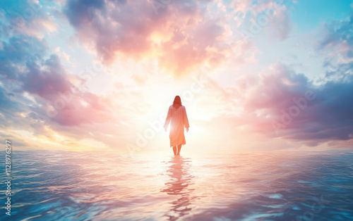 Golden door of heaven with illuminated stairs and glowing clouds in a serene, ethereal atmosphere