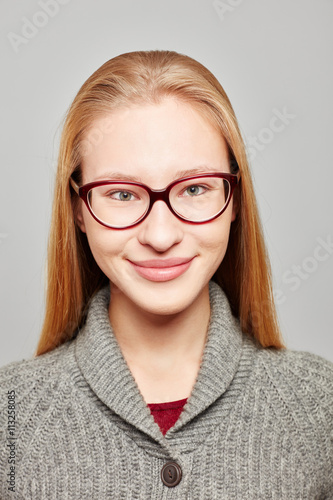 Junge Frau zu Weihnachten vor rotem Hintergrund