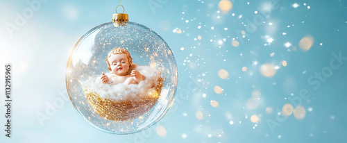Elegant Christmas ornament featuring baby Jesus in a transparent glass sphere