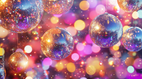 Vibrant disco balls creating a colorful and sparkling visual spectacle