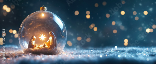 Nativity Scene Paper Cut Illustration With Mary Joseph Baby Jesus Sheep On Blue Background For Christmas Holiday Season