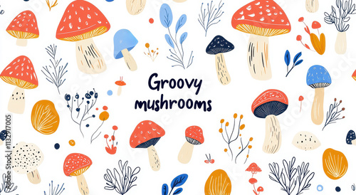 Seamless playful and colorful pattern featuring various fruits in a whimsical style