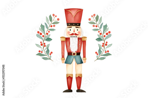 Watercolor festive floral frame with berries, leaves, and pinecones on white background