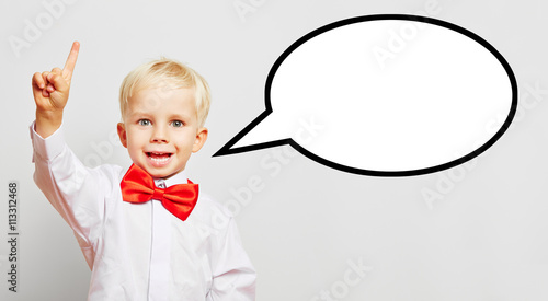 Kind hält Sprechblase vor seinen Mund