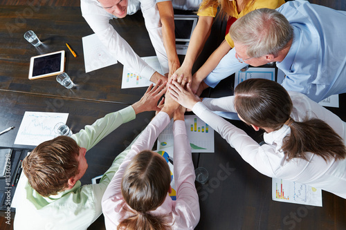 Gruppe Geschäftsleute stapelt Hände zur Motivation