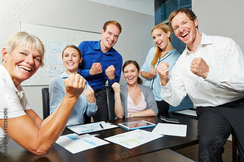 Jubelnde Geschäftsleute mit geballten Fäusten