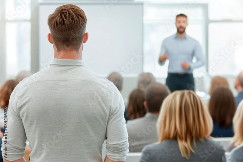 Professional speaker conducting a presentation for an engaged audience in a conference