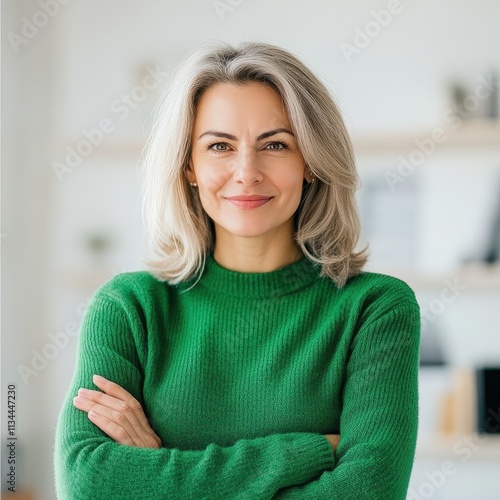 Confident German businesswoman in her 30s with a welcoming smile in the office
