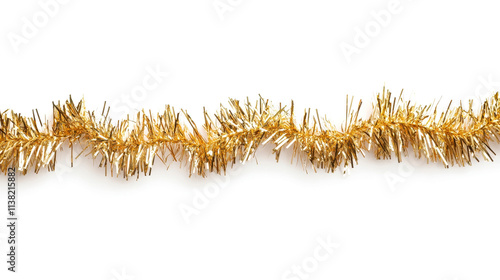 Shiny gold tinsel garland for decoration against a plain white background